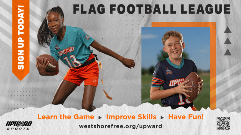 Upward’s mission is to promote the discovery of Jesus through sports. Children are introduced to a relationship with Jesus and encouraged to grow in their love for Him while also learning fundamentals, teamwork, and good sportsmanship, having fun without the stress of winning as the most important goal. We offer Flag Football (Aug-Oct) and basketball and cheerleading (Jan-Mar). Registration opens three months prior to the start of the season.