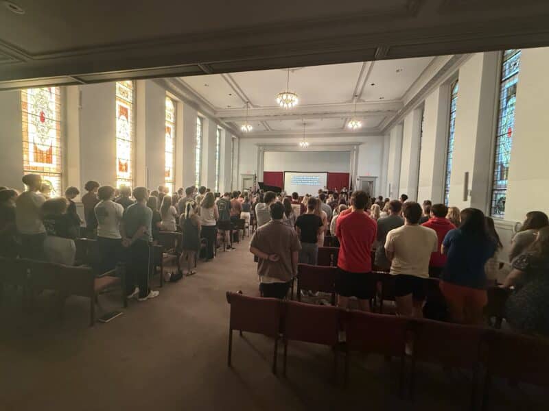 We meet students, we build relationships, and we open the Scriptures together. It’s not fancy programs that win souls for Christ, but patient prayer and the power of God’s Word. Once a week, we hold a large-group meeting where we are teaching through Luke, but we also facilitate over a dozen student-led bible studies that happen throughout the week. We have a leadership team of students who are eagerly seeking more training on how to share their faith, and partnering with our staff team to disciple younger students.